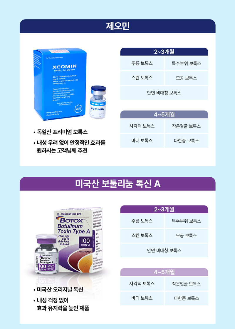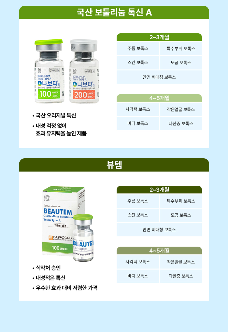 보툴리눔 톡신 성분이 과도하게 긴장된 근육을 이완시켜, 눈가·미간·이마 주름 등