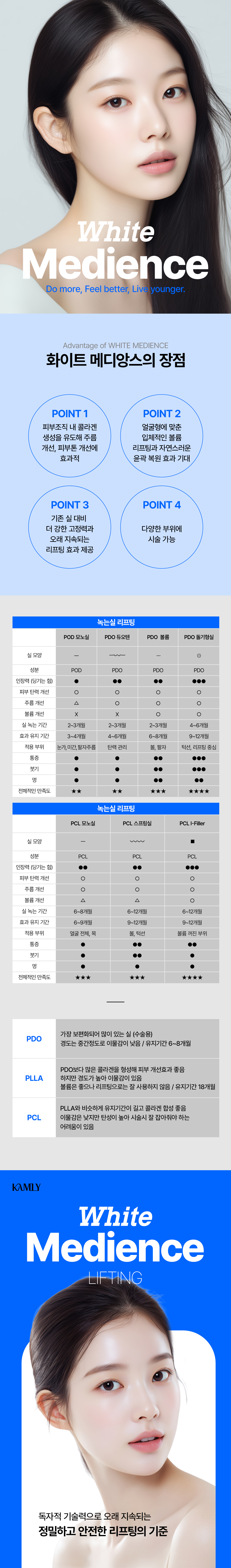 화이트 메디앙스는 탄력 저하, 처짐, 팔자주름, 턱선 등 부위별 특성에 따라