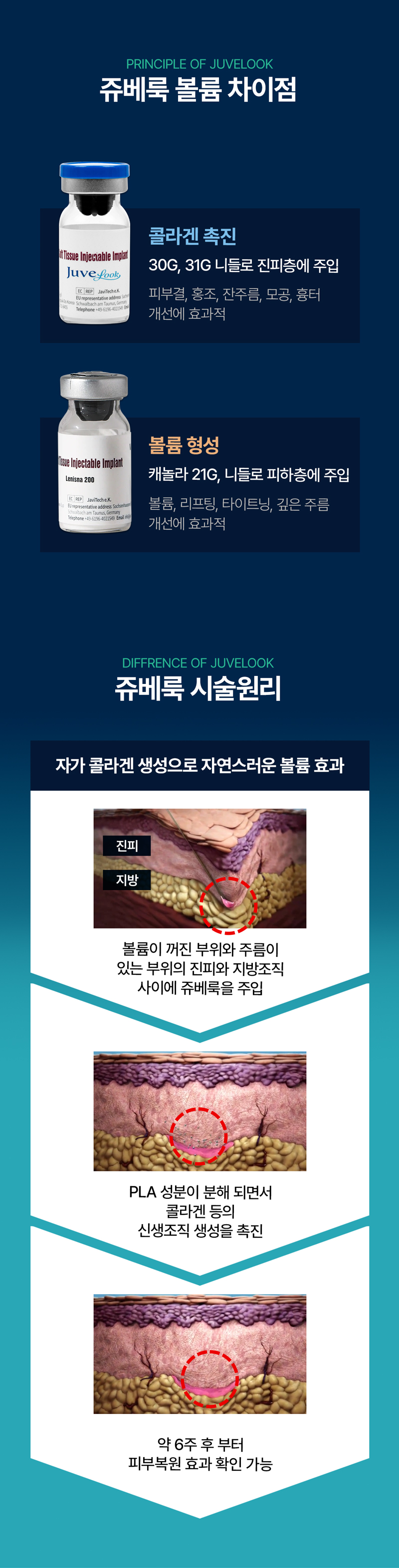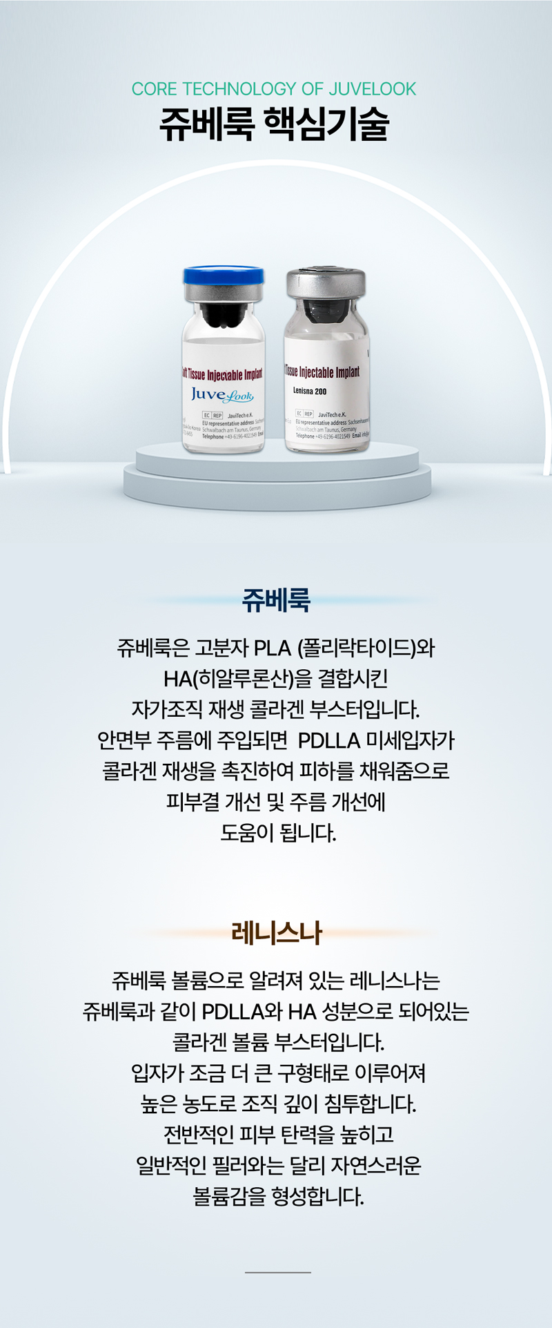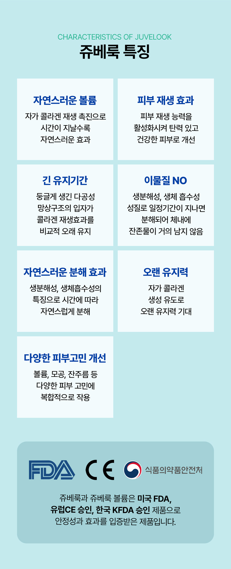 쥬베룩은 폴리-D, L-젖산(PDLLA) 와 히알루론산(HA) 성분을 결합한 신개념 스킨부스터로,