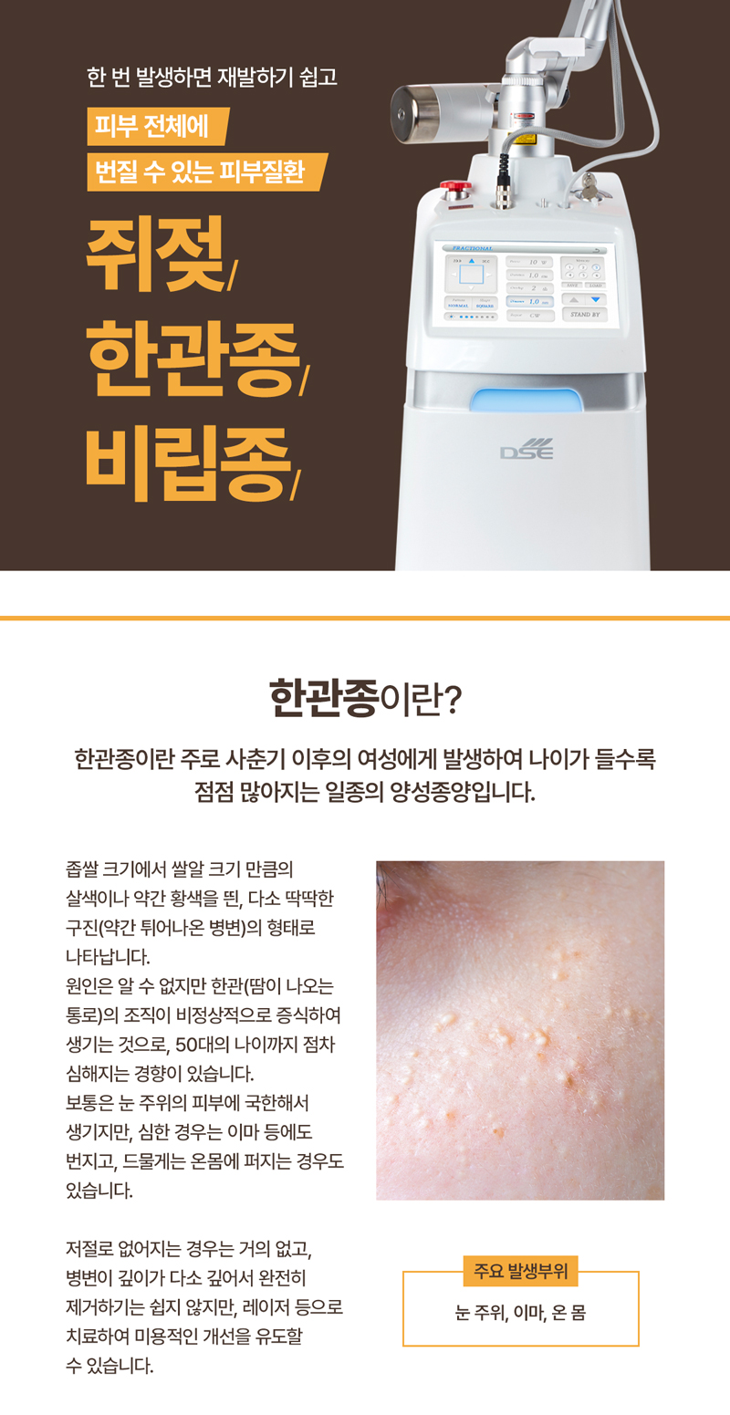 얼굴, 목, 팔 등 눈에 띄는 점, 비립종, 한관종, 쥐젖으로 고민하는 분